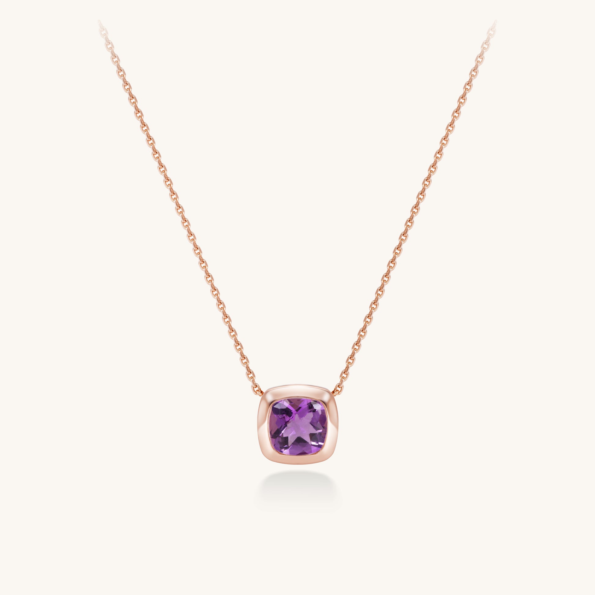 Cushion Bezel Amethyst Pendant Necklace | 18K Rose Gold Plated Sterling Silver