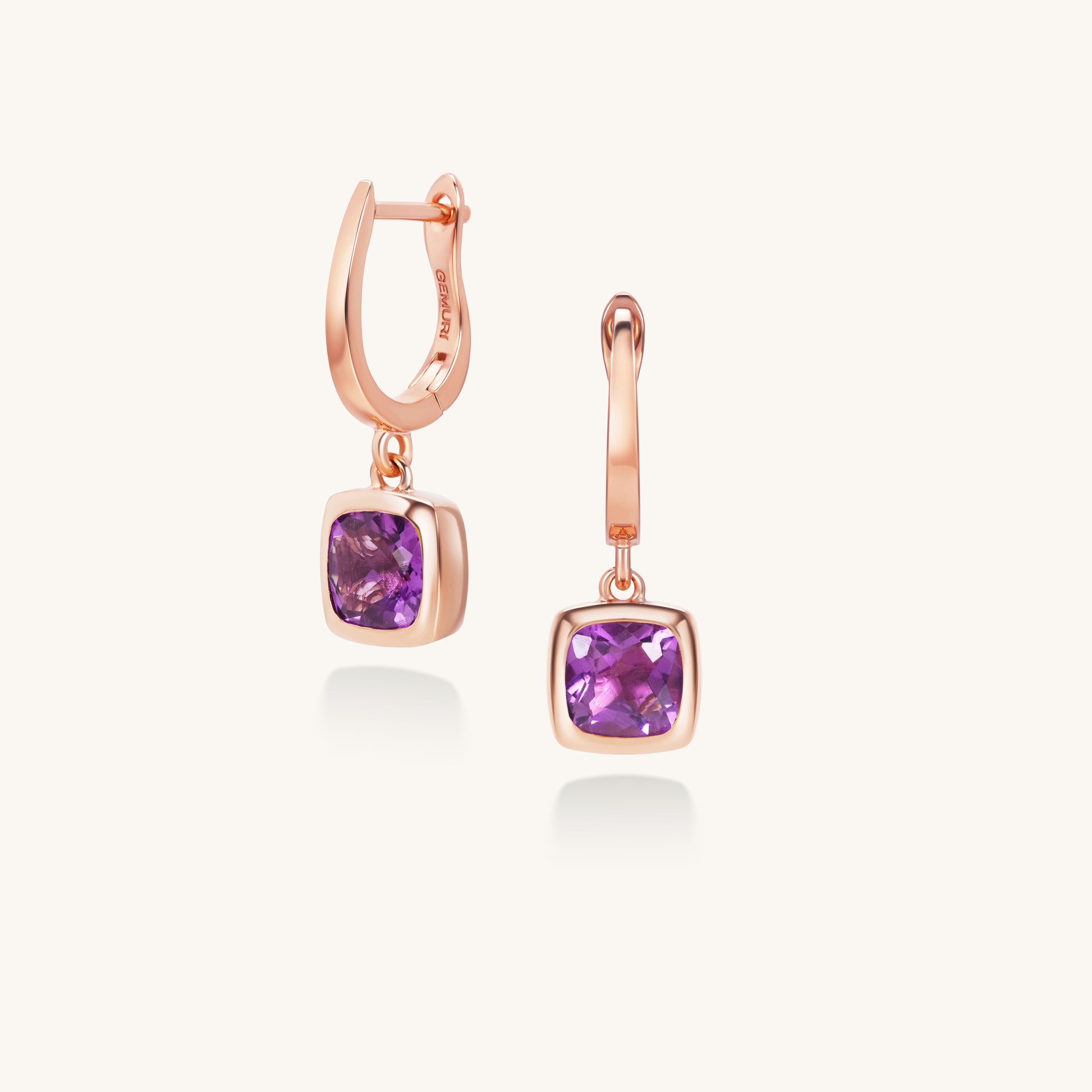 Amethyst Cushion Drop Hoop Earrings | 18K Rose Gold Plated Sterling Silver