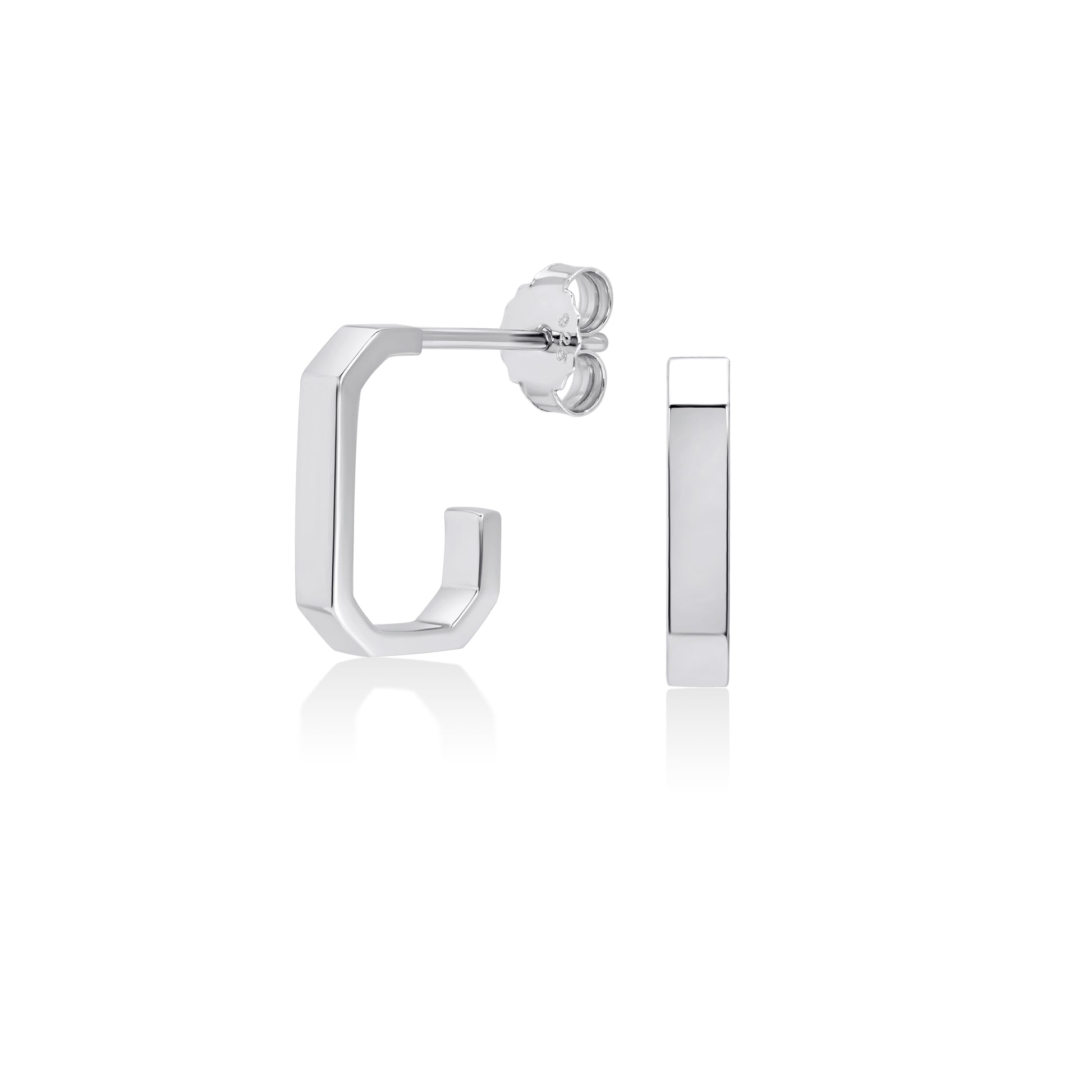 Geo Square Hoop Earrings | 18K White Gold Plated Sterling Silver