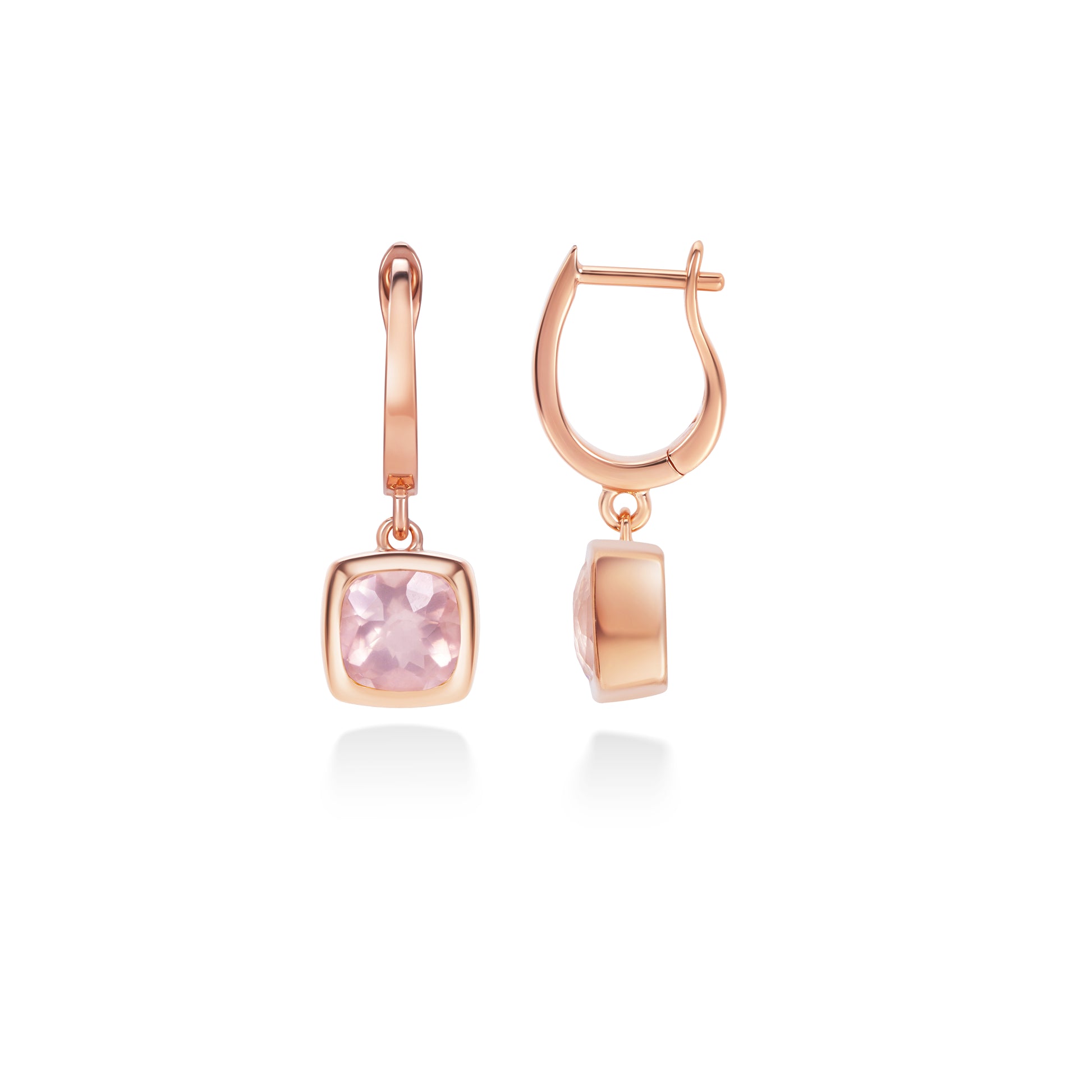 Rose Quartz Cushion Drop Hoop Earrings | 18K Rose Gold Plated Sterling Silver