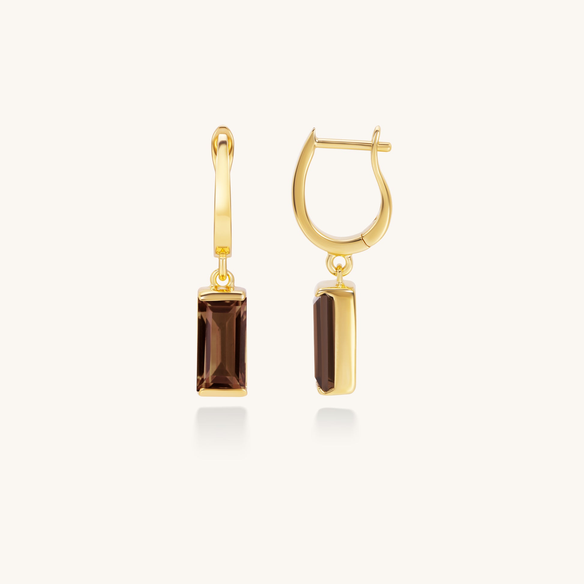 Smoky Quartz Baguette Drop Earrings | 18K Gold Plated Sterling Silver